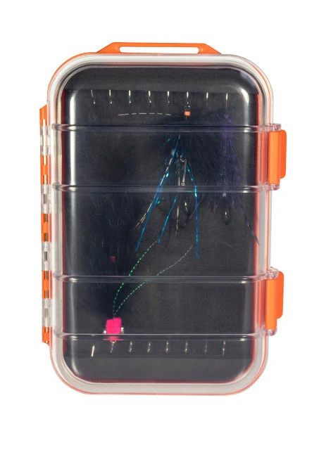 - With multiple compartments and a secure latch, this fly box keeps your flies organized and protected. The compact and lightweight design makes it easy to carry on any fishing trip.