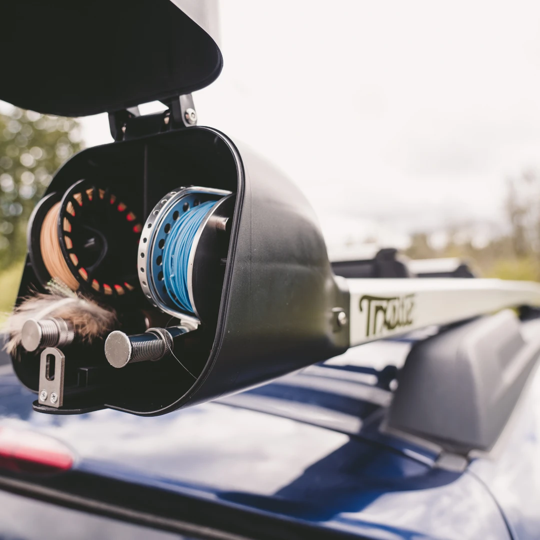 The CRC System provides secure and convenient storage for your fully rigged fly rods with unsurpassed gear protection. Every CRC System comes with secure mounting clamps, padding in the reel compartment, and our proprietary suspended rod liners. Leave your gear on your vehicle full time , or quickly take the CRC System down and telescope it into carry mode in just minutes with the fastest and easiest to use mounting system on the market. Equipped with our patented, protective, no-snag, reel-up design – this is not your average rod carrier.